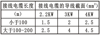 3.電壓波動(dòng)允許在342-418伏之間。如電泵使用地距電源較遠(yuǎn),應(yīng)按下表電纜,接頭盡可能減少。
