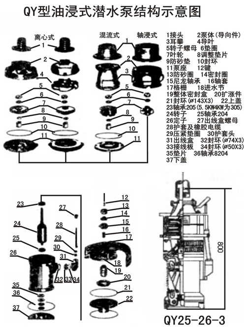 QY型油浸式潛水泵結(jié)構(gòu)示意圖