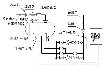 無(wú)負(fù)壓管網(wǎng)增壓穩(wěn)流成套供水設(shè)備工作原理圖