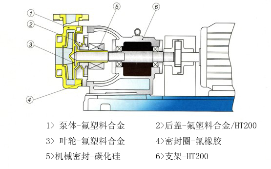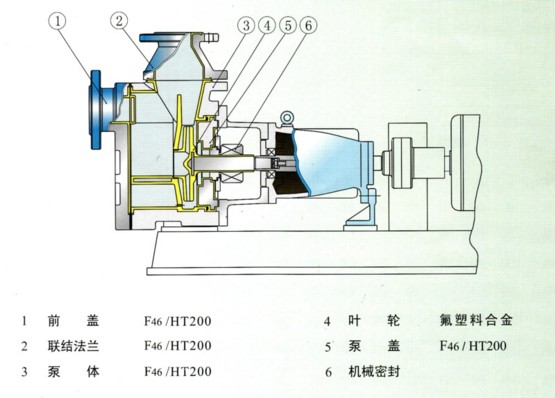 IHF襯氟離心泵按國家標(biāo)準(zhǔn)設(shè)計;泵體采用先進(jìn)的生產(chǎn)工藝以金屬外殼緊襯氟塑料(F46)制造,泵的承重部分為金屬材料具有機(jī)械強(qiáng)度高、耐壓性強(qiáng)、抗機(jī)械沖擊力優(yōu)越等優(yōu)點(diǎn);主要過流部件葉輪、泵蓋等均采用金屬嵌件外包氟塑料一次性高溫模壓而成;配置外裝式金屬波紋管機(jī)械密封,對磨材質(zhì):氧化鋁VS四氟、碳化硅VS四氟、硬質(zhì)合金VS硬質(zhì)合金,用戶可根據(jù)工況要求選擇對磨付。