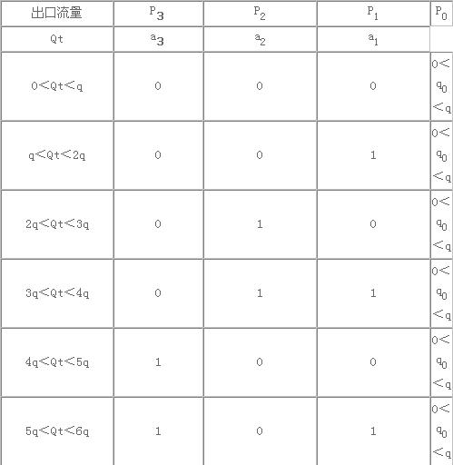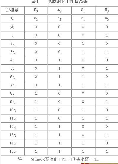 在文獻(xiàn)[1]中提出了一種不使用變頻器(或氣壓罐)的自動(dòng)穩(wěn)壓給水方法,即二進(jìn)制變流量水泵組合穩(wěn)壓給水方法,現(xiàn)介紹如下:
