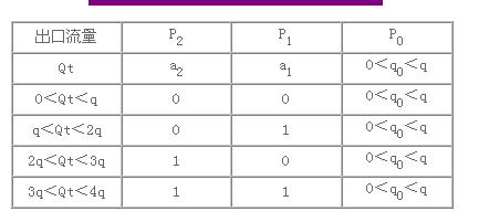 如圖2所示,該系統(tǒng)共有三臺(tái)水泵(虛線所畫水泵不計(jì)入)P0、P1、P2,其中P0與P1的額定流量為q,而P2的額定流量較大為2q,三臺(tái)水泵的額定揚(yáng)程相同。另外只有P0采用變頻器連續(xù)控制轉(zhuǎn)速,而P1與P2直接工頻電源開關(guān)控制。