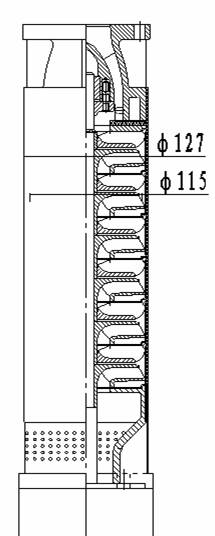 圖2代表了今后的發(fā)展趨勢,其單級揚(yáng)程大約在35米左右,其單級軸向高度只有85毫米,如果做一臺100米揚(yáng)程的井泵只需要3級葉輪和泵體,加上進(jìn)水節(jié)和出水閥,泵體總長不到0.6米。而且其水泵效率與可靠性都會有所提高。 下表是我們要設(shè)計的井用潛水泵與國內(nèi)外同類井泵的技術(shù)參數(shù)比較: