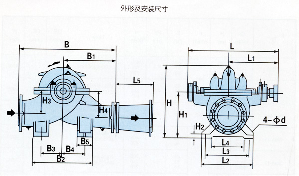S,SH型單級(jí)中開(kāi)離心泵外型及安裝尺寸