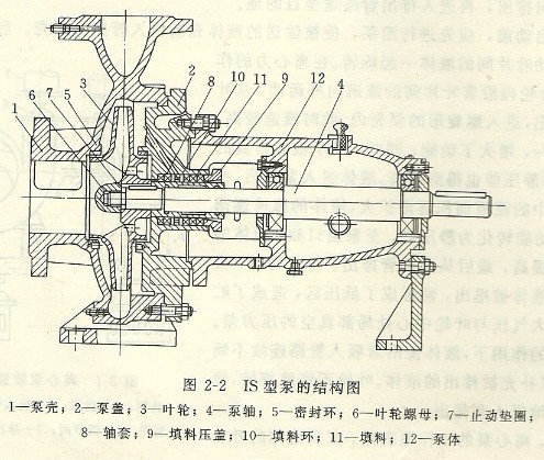 單級(jí)離心泵由于其用途的不同,有很多型號(hào),它們的結(jié)構(gòu)也各不相同。在此,只介紹較常用的IS型和S型兩種單級(jí)離心泵的結(jié)構(gòu)。