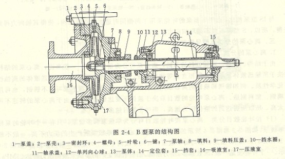 單級(jí)懸臂式離心泵有前開門式和后開門式兩種結(jié)構(gòu)。前開門式為葉輪前面為泵蓋,后面為泵殼;而后開門式與前開門式相反,葉輪前面為泵殼,后面為泵蓋。圖2-2所示的IS型泵的結(jié)構(gòu)為后開門式,圖2-4所示的B型泵的結(jié)構(gòu)為前開門式.