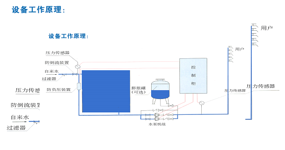 3.運行可靠性:當用水高峰時,或自來水停水時,由水箱供水,大大提高用戶用水的可靠性,完全符合自水供水規(guī)范。
