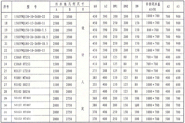 注:設計人員也可根據(jù)實際情況確定污水池(集水坑)的平面尺寸。污水池(集水坑)深度應小于等于6.0m.