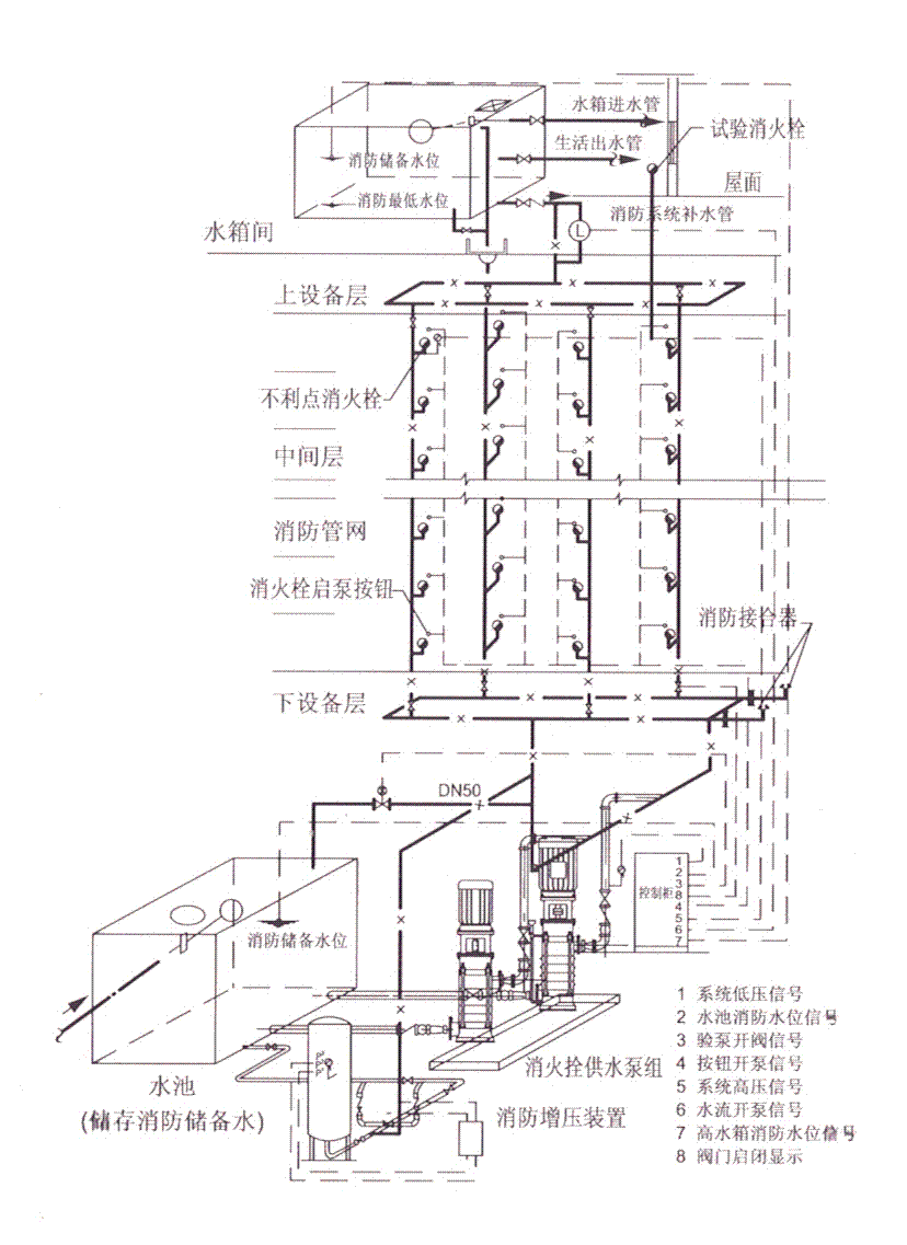 水箱穩(wěn)壓消火栓系統(tǒng)原理圖