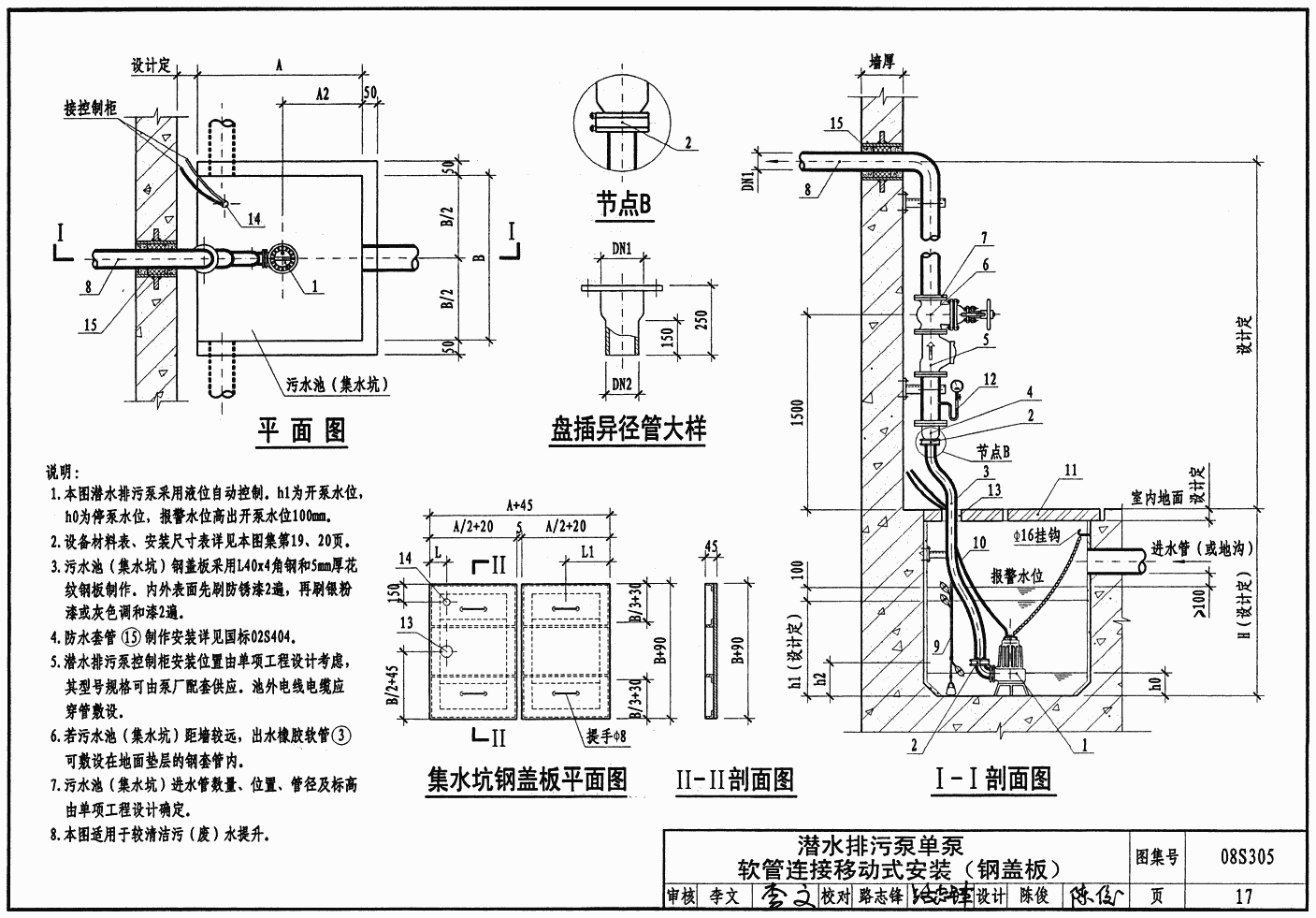 潛水排污泵單泵軟管連接移動(dòng)式安裝示意圖