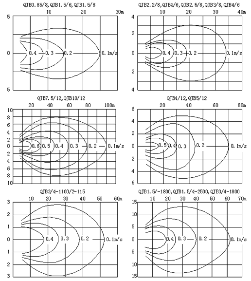 九、QJB型不銹鋼潛水攪拌機的流速圖: