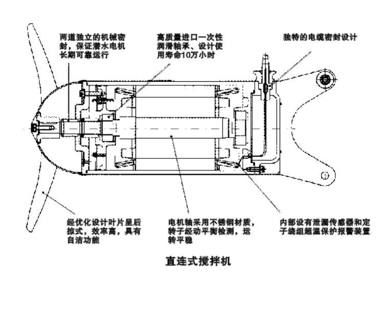5、潛水攪拌機所需要的配套功率是按容積大小,攪拌液體的密度、粘度和攪拌深度而確定的,根據(jù)具體情況應(yīng)采用一臺或多臺攪拌機。