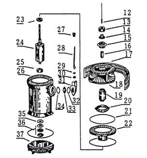 6、潛水泵的葉輪,整件密封盒,尼龍軸承座,不銹鋼軸套橡皎擴(kuò)張件,護(hù)套、等一些易損另部件,以及各種"O"型橡膠封環(huán),加油螺孔上的橡膠襯墊等可向當(dāng)?shù)剞r(nóng)機(jī)部門聯(lián)系或向本廠銷售科函購(gòu)。