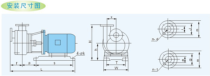 FZB襯F46氟塑料自吸泵結(jié)構(gòu)安裝尺寸圖