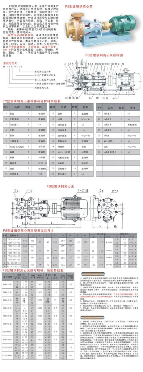 FS型軸聯(lián)玻璃鋼離心泵,主要用于石化、冶煉、染料、印染、農(nóng)藥、制藥、稀土、化肥等行業(yè),輸送不含固體顆粒,不易結晶,F(xiàn)S型軸聯(lián)玻璃鋼離心泵溫度不高于100℃的各種非氧化性酸(鹽酸、稀硫酸、甲酸、醋酸、丁酸)等腐蝕介質(zhì)必不可少的理想設備。