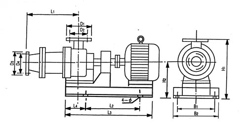 I-1B系列單螺桿濃漿泵由電動(dòng)機(jī)、聯(lián)軸器、泵和底座四個(gè)部分組成(見(jiàn)附圖)。