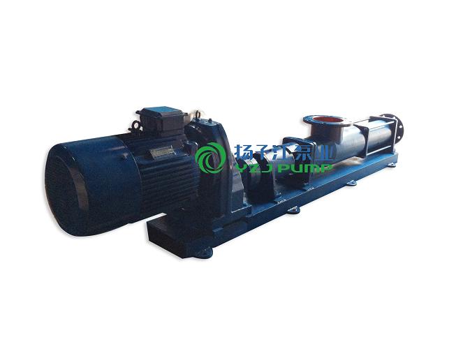 單螺桿泵又稱蛇泵、摩伊諾(Moyno)泵。該泵是早前應(yīng)用極為廣泛的一種高粘度泵。其轉(zhuǎn)子為一根金屬材質(zhì)的單頭陽(yáng)螺桿(在垂直于軸線的斷面上為圓形),定子多為橡膠材質(zhì)的特殊雙陰螺旋(在垂直于軸線的斷面上孔的形狀為跑道形)轉(zhuǎn)子在定子中滾動(dòng)時(shí)所形成的密封線逐漸向出口端移動(dòng),從而使液體沿軸線從進(jìn)料口移至出料口。該泵的優(yōu)點(diǎn)在于輸送平穩(wěn),脈動(dòng)小且對(duì)物料無(wú)攪拌作用,對(duì)固體顆粒也不敏感。但是由于摩擦阻力大,其能耗明顯高于其他形式的轉(zhuǎn)子泵。如和齒輪泵相比,在同等流量、壓力等指標(biāo)下,功率配置基本上為3:1。加之其定子材質(zhì)等因素,定子磨損很快,需經(jīng)常更換,而且完全不能應(yīng)用于高溫場(chǎng)合。