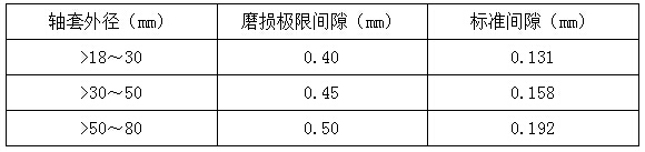8、定期維修測(cè)量石墨軸承和軸套之間的間隙,以確保定子屏蔽套和轉(zhuǎn)子屏蔽套之間的間隙。一般情況以下表值為限,如超過(guò)表中的規(guī)定應(yīng)修復(fù)或更換。