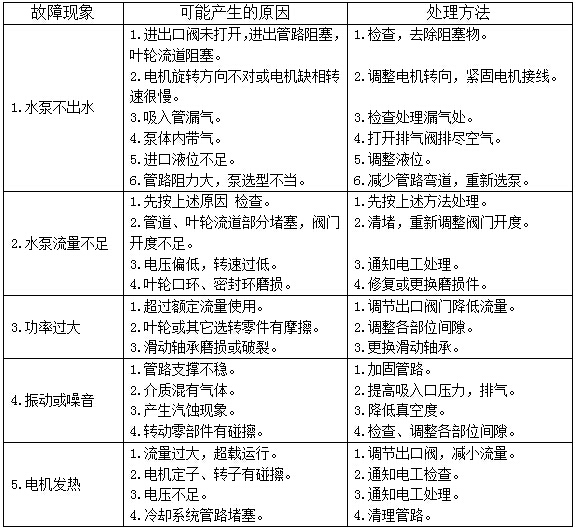 屏蔽式管道泵的使用規(guī)定 故障原因及排除方法