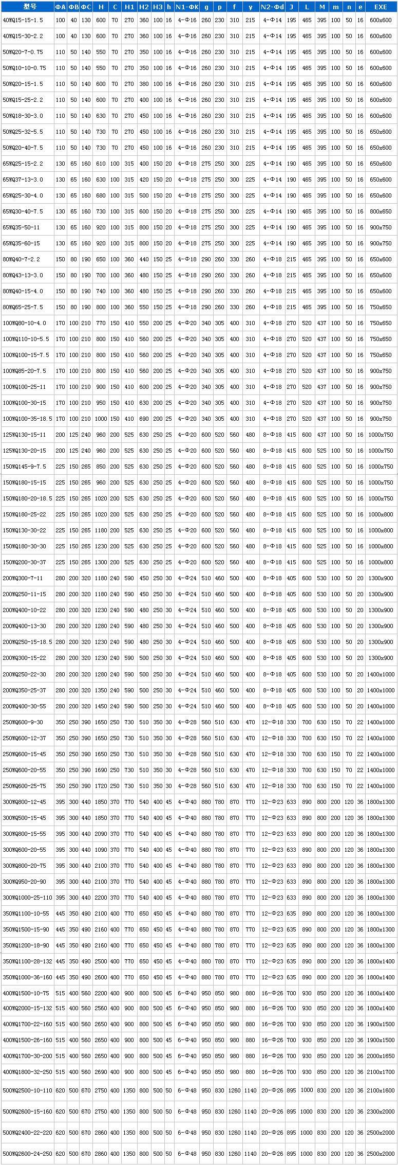 WQ固定潛水式無(wú)堵塞排污泵安裝尺寸表: