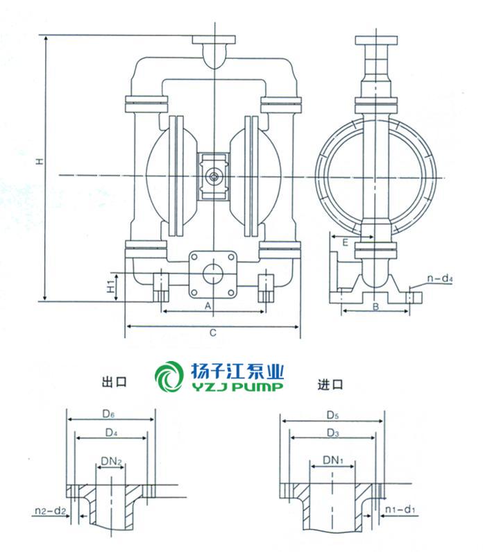 QBY系列氣動(dòng)隔膜泵(安裝尺寸)