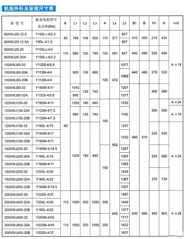 XWJ新型無堵塞紙漿泵(安裝尺寸)