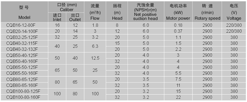 CQB-F系列全氟襯氟磁力泵性能參數(shù)型號意義安裝尺寸