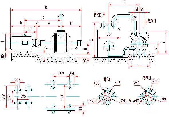 五、SZ型水環(huán)式真空泵安裝尺寸: