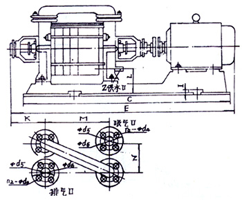 2SK水環(huán)真空泵的真空度和抽氣量可通過管路上的閘閥來調(diào)節(jié)。圖中未畫出。用戶自行安裝。