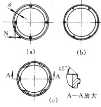 在兩個(gè)密封環(huán)之一的密封端面開(kāi)有各種溝槽,由于旋轉(zhuǎn)而產(chǎn)生流體動(dòng)力壓力場(chǎng),引入密封介質(zhì)做為潤(rùn)滑劑 |