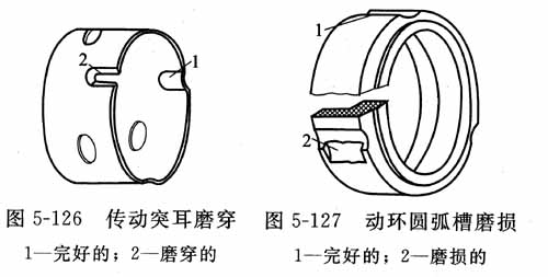 與傳動座突耳接觸的動環(huán)圓弧槽也產(chǎn)生相應(yīng)的磨損,見圖5-127,原因同上。