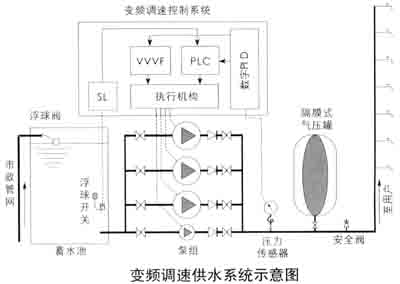 2、該設(shè)備由原裝進(jìn)口 交流變頻調(diào)速器、工業(yè)級可編程控制器、數(shù)字PID調(diào)節(jié)器、引進(jìn)低壓電器、壓力傳感器、液位控制器及電機(jī)泵組構(gòu)成閉環(huán)調(diào)節(jié)變頻調(diào)速供水控制系統(tǒng)。該系統(tǒng)可根據(jù)管網(wǎng)瞬時(shí)壓力變化,自動(dòng)調(diào)節(jié)某臺水泵電機(jī)的轉(zhuǎn)速和多臺水泵電機(jī)的投入和退出,滿足用戶恒壓變量供水及變壓變量供水的需要,使供水管網(wǎng)末端壓力保持恒定,使得整個(gè)供水系統(tǒng)始終保持高效節(jié)能的佳狀態(tài)。