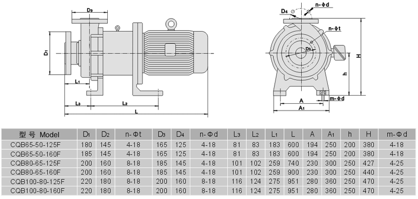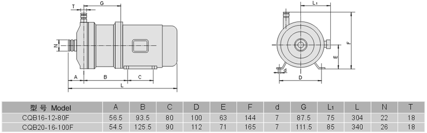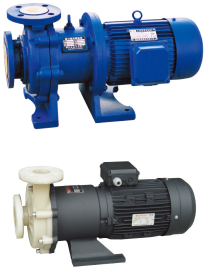 CQB-F型氟塑料磁力泵的過流部件均采用“聚偏二氟塑料合金(PVF2)和超高分子量聚乙烯(UHMWPE)”制造。在常溫下,PVF2對鹵素、鹵代烴、強(qiáng)氧化劑、沸酸、堿等多種有機(jī)溶劑都有良好耐蝕性;UHMWPE對非氧化性酸(稀硫酸、硝酸及濃度較大的鹽酸、磷酸、氫氟酸、甲酸、乙酸)、氨和胺及各種堿、鹽溶液都有良好的耐蝕性,兩種材料都不耐強(qiáng)氧化性酸的腐蝕。氟合金泵的外殼為金屬材料,有足夠的強(qiáng)度承受管道以及外界的機(jī)械沖擊。傳動功率3kW以下的采用全氟結(jié)構(gòu)。