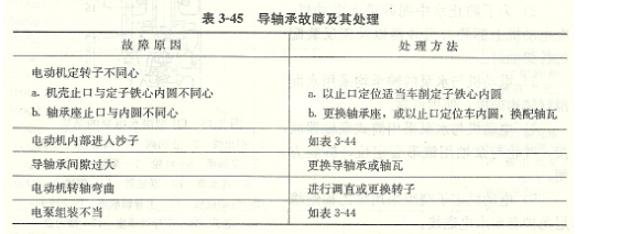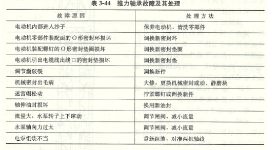 查明原因,對電動機(jī)進(jìn)行維護(hù)保養(yǎng)。表3-44推力軸承故障及其處理
