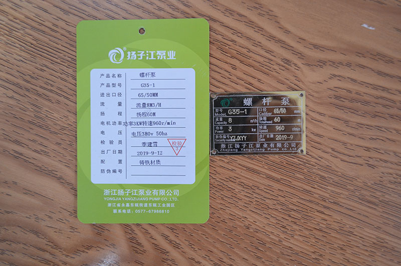 > 螺桿泵系列合格證