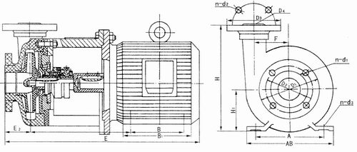 PF(FS)型系列化工泵為直聯(lián)式結(jié)構(gòu),由泵體及托架與電機(jī)法蘭聯(lián)接,托架支承泵體,葉輪通過(guò)軸與電機(jī)直聯(lián)。該系列泵的特點(diǎn):結(jié)構(gòu)簡(jiǎn)單緊湊、零件少、性能好。泵的旋轉(zhuǎn)方向,自吸入口向電機(jī)方向看為順時(shí)針?lè)较蛐D(zhuǎn),泵出口垂直向上。    泵的密封,選用聚四氟乙烯(F4)波紋管,外裝式耐腐蝕機(jī)械密封。