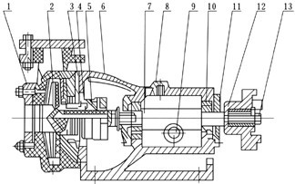 該泵采用目前為先進的外裝式四氟波紋管機械密封,擁有多層保護,延長了機封使用壽命,對于輸送含雜質(zhì)顆粒介質(zhì)時,可配用無冷卻水單端面硬對硬(碳化硅對碳化硅)機械密封,所以用戶選型時需考慮到介質(zhì)中的固體含量。